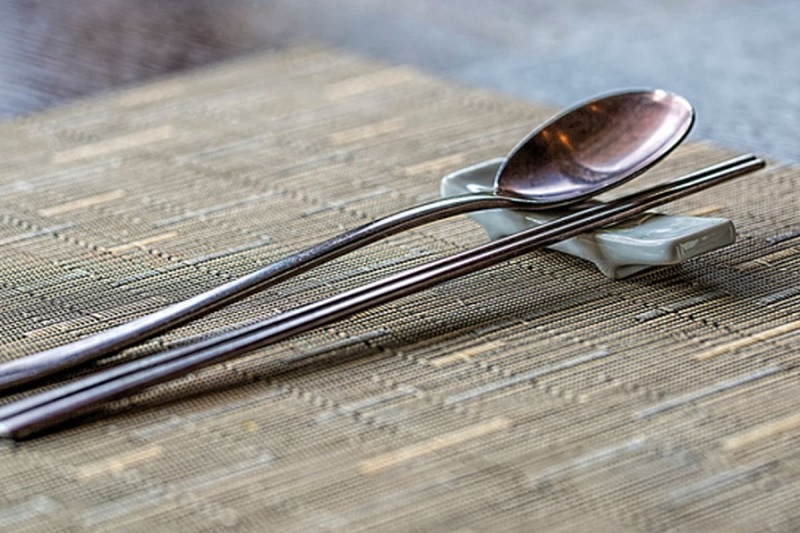 Dalam etika makan budaya Korea, sendok atau sumpit yang tidak digunakan diletakkan di atas meja. Aturan makan ini sangat penting dalam budaya Korea ketika menikmati hidangan.